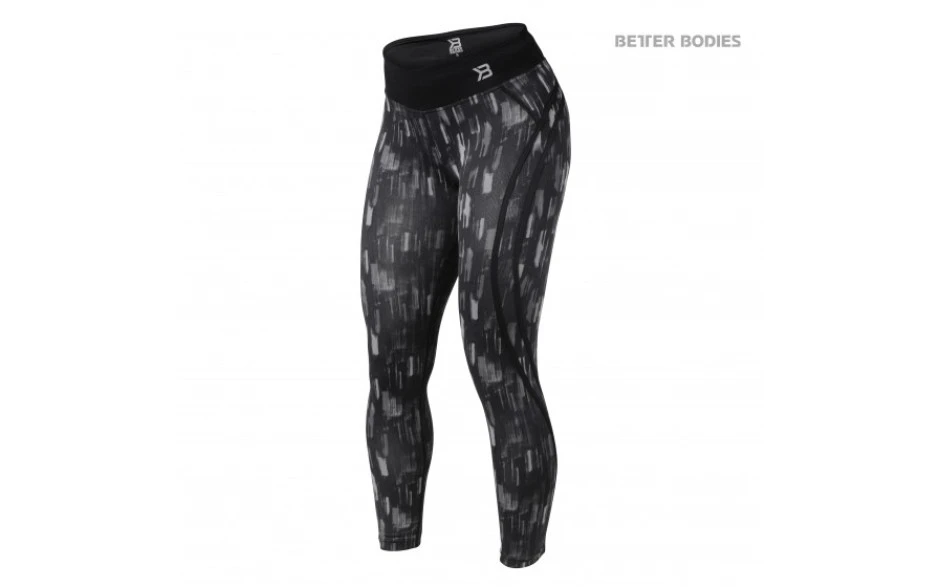 Das Muster der Better Bodies Manhattan high waist ist sehr schön gestaltet. Es sieht sich mit dunkel-und hellgrauen abstrakten Strichen senkrecht über die ganze Leggings. Der schwarze Bund hebt sich nochmal von dem Grau der Leggings ab. Es wurden auch noch schwarze Kontraststreifen eingearbeitet. Sie verlaufen vom Gesäß an seitlich über die Hüfte und runter bis zu den Knöcheln. Diese Streifen schmeicheln der weiblichen und sportlichen Figur.