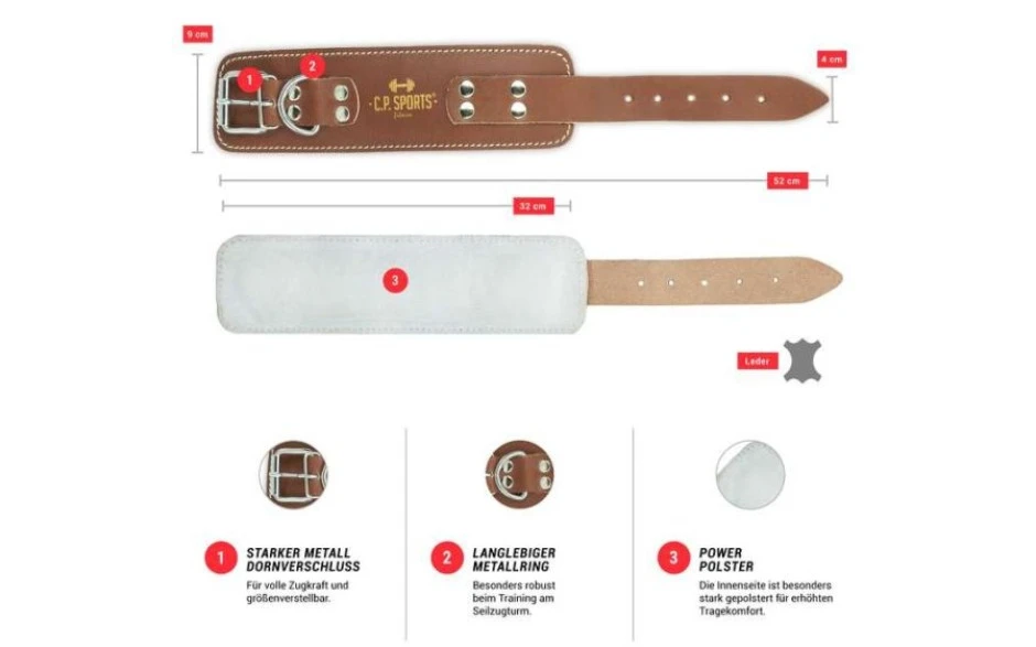 Sie wollten schon immer ein mal ein Workout mit Fußschlaufen absolvieren? Zum Beipsiel am Kabelturm für die Beinmuskulatur u.a Adduktoren und Abduktoren Muskulatur? Dann sind die gepolsterten Fußschlaufen aus Leder von C.P Sports genau das Richtige Trainingsequipment für Sie egal ob Frau oder Mann.
