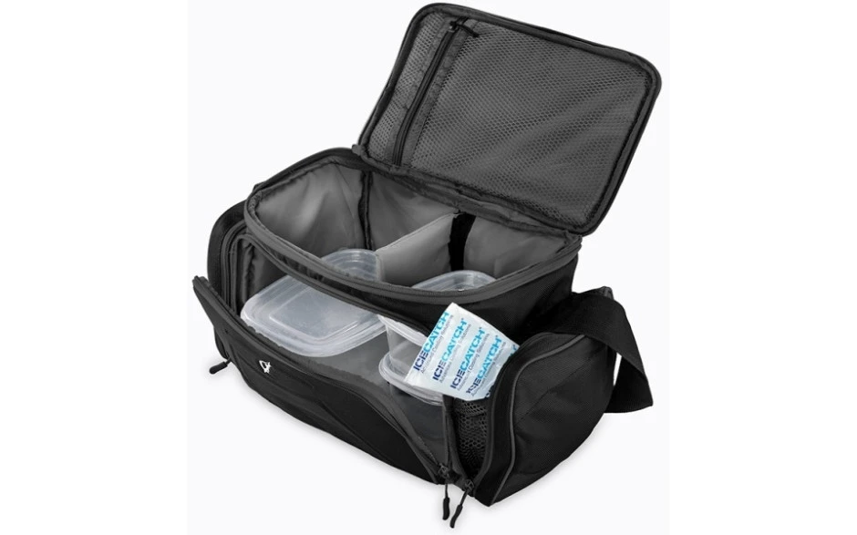 Mit der bei Sportnahrung-Engel erhältlichen Climaqx Meal Prep Tasche kannst Du Deinen Ernährungplan auch unterwegs optimal einhalten. Die praktische und qualitativ hochwertige Mahlzeitentasche bietet extra viel isolierten Stauraum für Deine Mahlzeiten, einen bequemen Tragekomfort, so wie viele extra Staufächer für Shaker, Pillenbox, Schlüssel, Handy uvm.