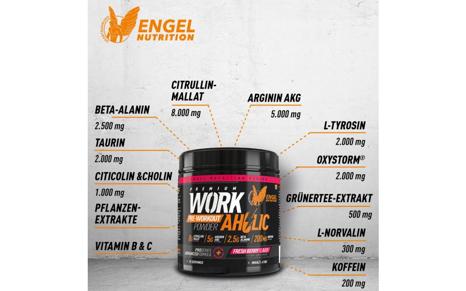 Ein guter Trainingsbooster ist für uns mehr als nur eine Mega-Dosis Koffein und Stimulanzien. Er ist ein Werkzeug um Deine Trainingszeit bestmöglich zu nutzen. Dazu benötigt er eine gut durchdachte und auf Erfahrung beruhende ausgewählte Kombination funktioneller Inhaltsstoffe. Workaholic® ist geboren!