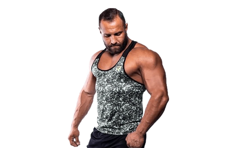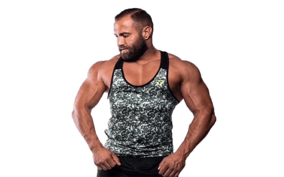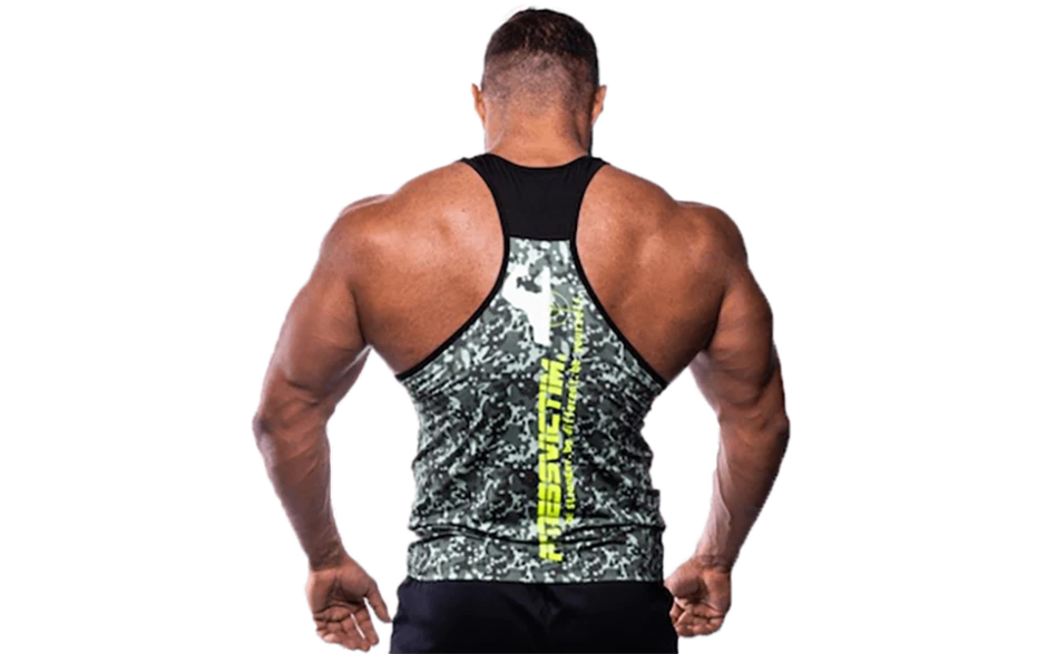 Das T-Back Tanktop im coolen Camouflage Style für deinen großen Auftritt im Gym.