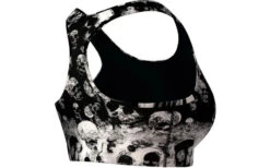 Auf der Brust des bauchfreien Tops ist das Logo in weiß aufgedruckt, welches auf dem schwarzen Stoff einen auffälligen Kontrast schafft.