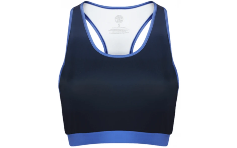 Die speziell angefertigte Sportswear für fitnessbegeisterte Frauen von Golds Gym ist hochwertig und sehr komfortabel. Das Golds Gym Sublimate Crop Top in navy ist ein baufreies Oberteil welches perfekt mit der Ladies Long Gym Leggings kombiniert werden kann. Aufgrund der Hauptfarbe navy / dunkelblau kann das Top mit unglaublich vielen Kleidungsstücken kombiniert werden. Ob einfach nur als Short Top oder als Sport-Bustier unter einem Top.