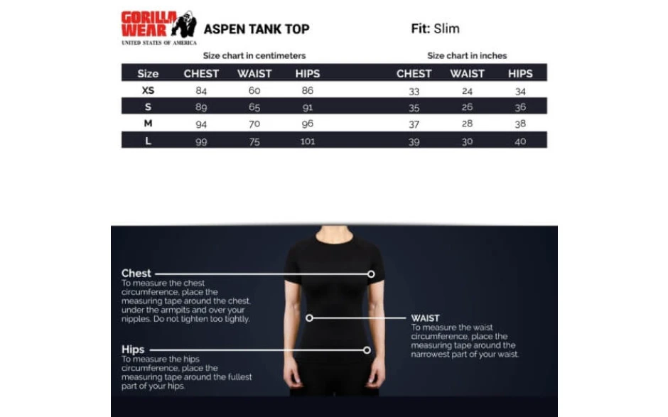 Mit diesem großartigen Tanktop trifft Gorilla Wear mal wieder voll ins Schwarze. Mit dem femininen Style und der eng anliegenden Passform scheint das Aspen Tanktop von Gorilla Wear einfach perfekt für das weibliche Publikum zu sein. Streif es dir vor dem Training über – du wirst es vermutlich nie wieder ausziehen wollen, weil der Schnitt und das Material gleichermaßen begeistern.