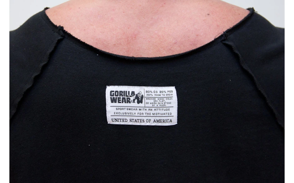 Die gefransten Nähte sind das Markenzeichen des Gorilla Wear Classic Workout Tops. Die Ärmel wurden somit auch fransig von außen angenäht.