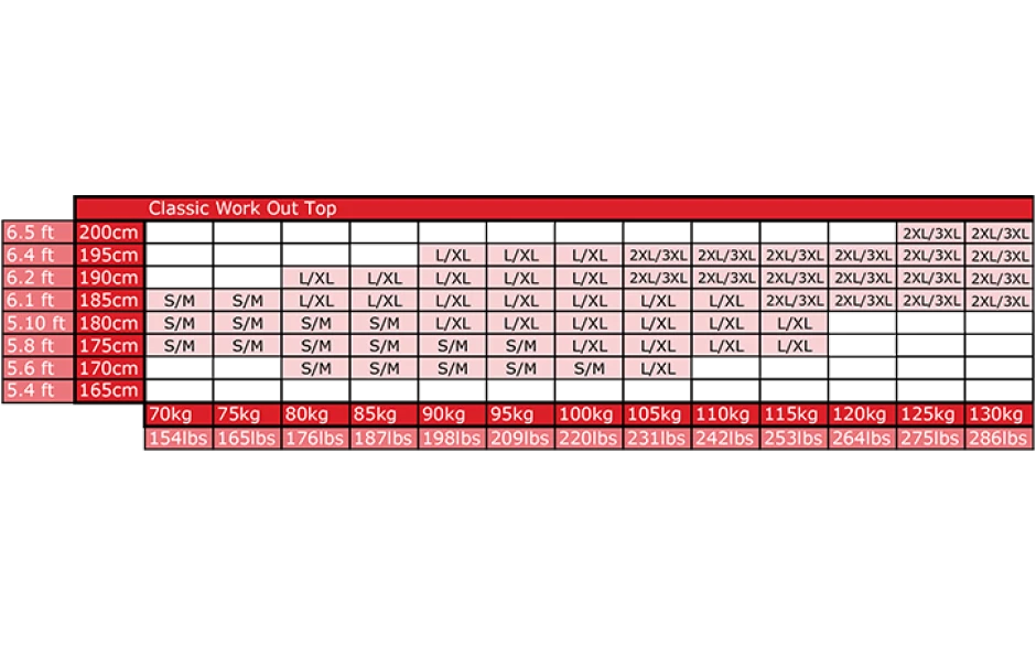 Bei einer Größe von 170cm und 90kg = Größe S/M und bei einer Größe von 180cm und 123kg die Größe XL