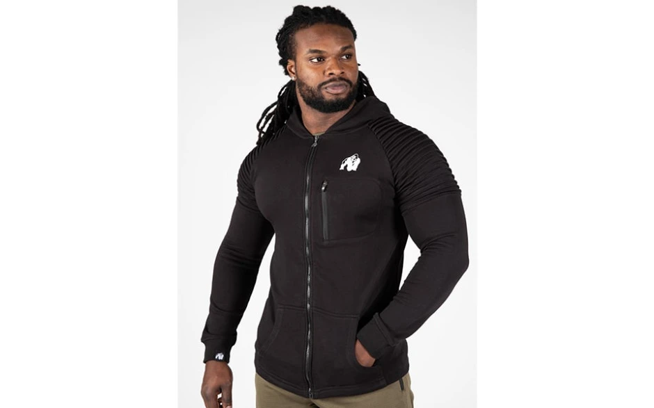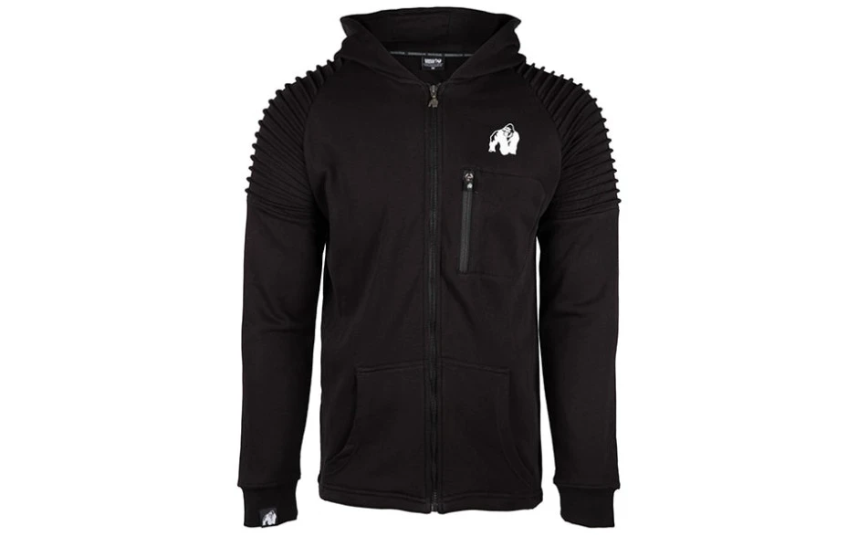 Gorilla Wear steht für Qualität und gutes Aussehen. Diese beiden Faktoren werden auch bei diesem schicken Hoodie perfekt kombiniert, um dir ein Kleidungsstück zu präsentieren, dessen Schnitt, Passform und Extravaganz einzigartig sind. Dank des leicht gängigen Reißverschlusses musst du diesen Hoodie nicht wie einen Pullover überstreifen – du kannst ihn ganz lässig als Jacke tragen. Ausgestattet mit zwei bequemen Seitentaschen und einer verschließbaren Brusttasche hast du deinen Schlüssel, dein Handy oder deine Brieftasche immer dabei.