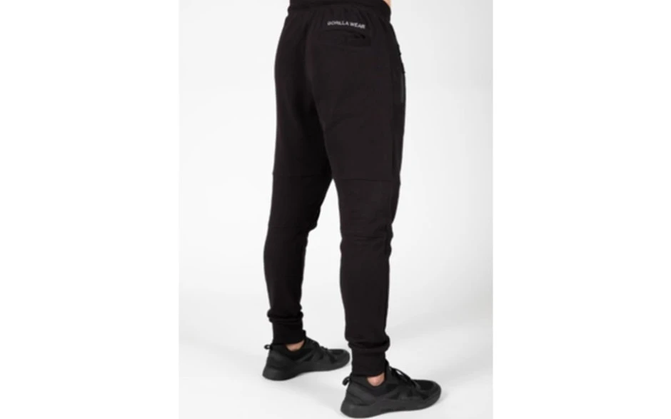 Ein Detail, das die Newark Pants von Gorilla Wear von anderen Hosen unterscheidet, sind die Seitentaschen, die du mit einem Reißverschluss fest verschließen kannst. Dank der längeren Kordeln musst du nicht lange nach dem Zipper suchen und hast deine Wertsachen sofort griffbereit. Eine Gesäßtasche rundet die Extras gelungen ab. Der weiße Schriftzug von Gorilla Wear verläuft übrigens parallel der Taschen. Oben schließt die Jogginghose mit einem schwarzen Kordelzug ab, der dir – in Kombination mit dem elastischen Bündchen – zusätzlichen Halt bietet.